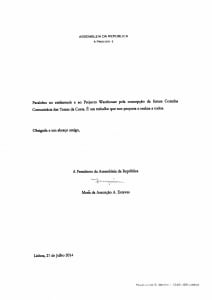 Letter of recognition from the Parliament sending regards concerning the Community Kitchen of Terras da Costa project.